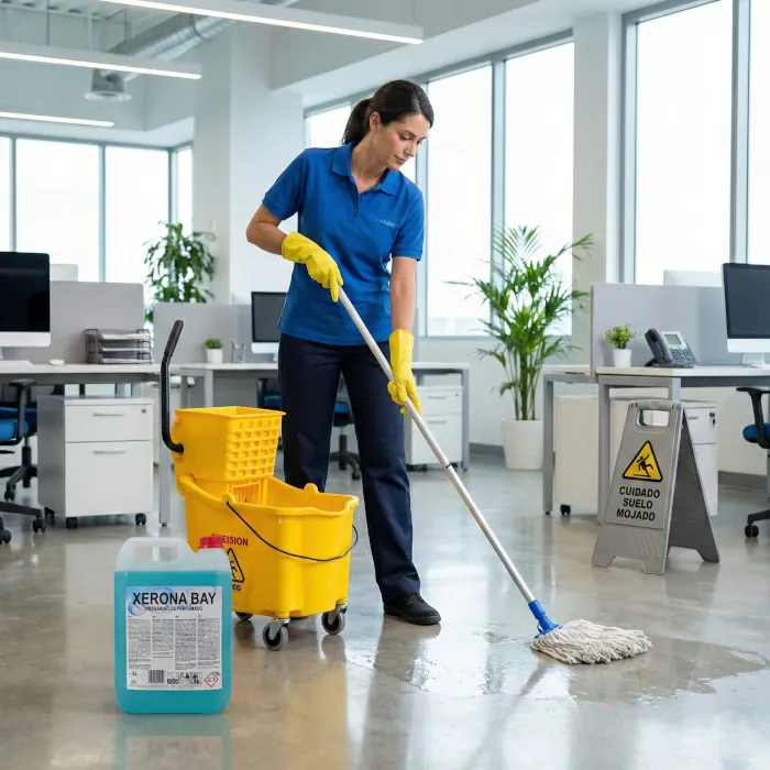 Consejo Pro: 💡 Para conseguir el efecto "espejo" total en suelos muy brillantes (como el mármol o el porcelánico negro), utiliza siempre agua templada o ligeramente caliente al hacer la mezcla con tu Friegasuelos Xerona Bay. El calor ayuda a que el bioalcohol se evapore aún más rápido, haciendo literalmente imposible que queden marcas de la fregona al trasluz.
