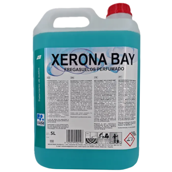 Consigue un brillo impecable en un tiempo récord con el Friegasuelos Xerona Bay. Este limpiador profesional está formulado con una base de bioalcohol que garantiza una limpieza profunda y un secado ultrarrápido. Su gran ventaja es que no deja velos, marcas ni rastros de la fregona, incluso en suelos brillantes vistos al trasluz. Con un agradable y duradero aroma marino, es la opción preferida por empresas de limpieza para mantener hoteles, oficinas y gimnasios con un aspecto y olor inmejorables.