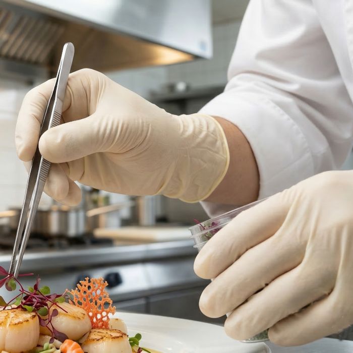 Los guantes látex cumplen con los estándares europeos más exigentes, clasificados como Producto Sanitario Clase I y Equipo de Protección Individual (EPI) Categoría III. Ofrecen protección avanzada contra riesgos químicos y microorganismos, incluyendo virus. Su certificación como material apto para utilizar con productos químicos Alimentaria según el Reglamento (UE) 10/2011 los hace indispensables en cocinas profesionales. Gracias a su elasticidad adecuada para la limpieza de la cocina, permiten trabajar con total precisión.