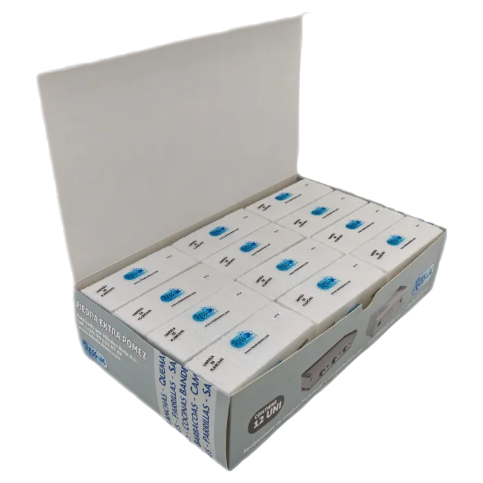https://limpiezabarata.com/producto/piedra-pomez-de-limpieza-caja-12-unidades/5340 Estuche 12 Unidades Piedra Pómez Limpieza Planchas (10x7x4 cm)