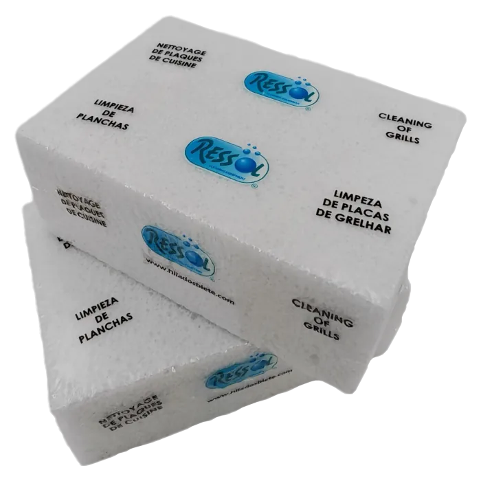 Al ser un producto ecológico de vidrio celular, no retiene olores y su formato en bloque es ideal y adecuado para ser utilizadas de forma totalmente segura en zonas de manipulación de alimentos. Aunque es la reina de las planchas de asar, la piedra pomez limpieza es tu mejor aliada para recuperar el fondo de ollas, paelleras y también para abrillantar otras superficies como fregaderos industriales de acero inoxidable. Para retirar la pasta resultante de la limpieza, utiliza siempre nuestras Bayetas Especiales Hostelería.